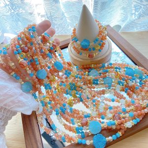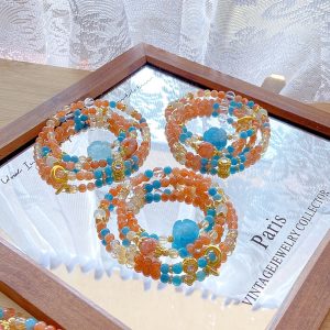 Be the first to review “All-natural aquamarine gold sun yellow tower crystal red gum flower three-circle bracelet”