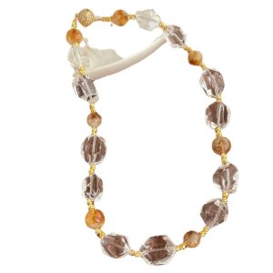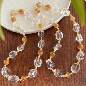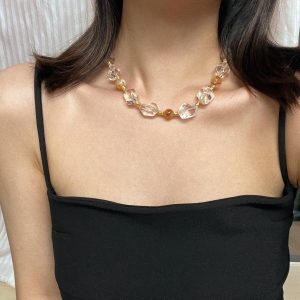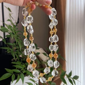 This clavicle necklace is inspired by the trendy Maillard vintage style of autumn and winter, cleverly combining the purity of natural white crystal with the warmth of yellow crystal. White crystal symbolizes purity and balance, while yellow crystal represents wealth and vitality. The overall color tone is warm and vintage, making it perfect for autumn and winter outfits, adding a touch of elegance and highlight to your look.